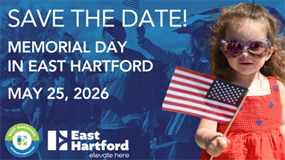 The Town of East Hartford, in collaboration with the East Hartford Veterans Commission, are excited to announce that East Hartford’s Memorial Day Parade and series of events will take place on Monday, May 25, 2026. The events will begin with the parade stepping off at 10:00 a.m.