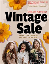 Great opportunity to get a great buy on all remaining Fall/Winter clothing before it's taken off our shelves for the Spring clothing comes out! Come on by Wednesdays - Sundays.